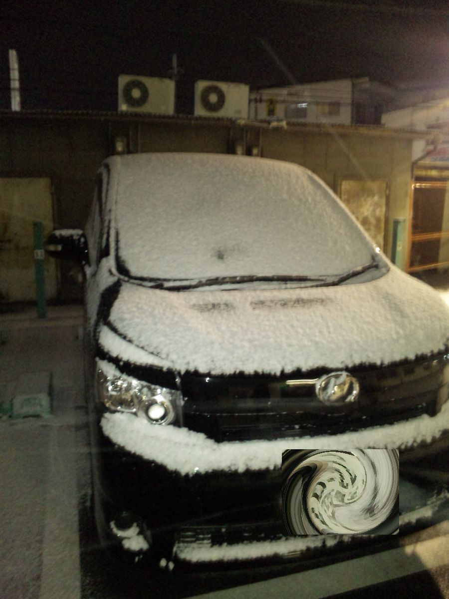そいや、さのっち宅わ高槻の上の方やねんけど、てゆーかもー京都府やねんけど、そりゃもーさぶいのなんのってなことで、帰り、うちのかわいいVOXY君 に雪積もってやした・・